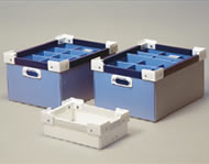 "エフセル"は、剛性・耐久性・緩衝性を備えた軽量な素材であるため、通い箱仕切り材などの梱包用途で使用されています。